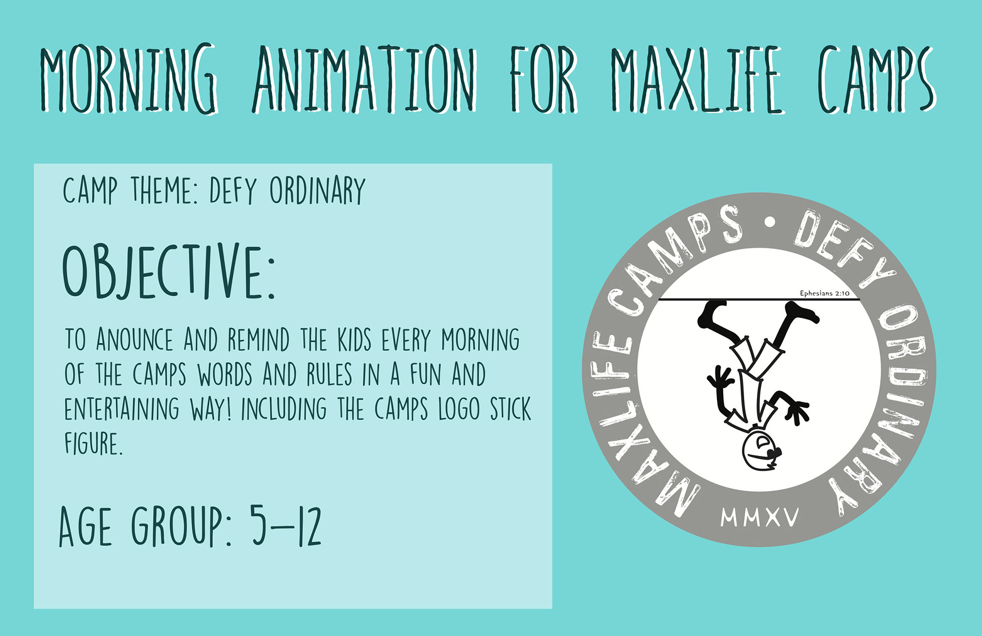 Intro animation for campers at Max Life Camp, Lake Marry, FL. Animation features the camps mascot going through the camps rules and key words.